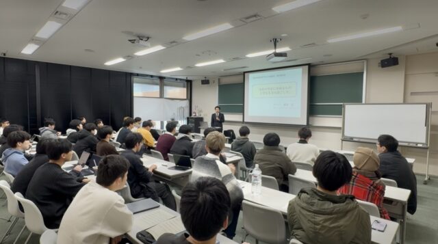 学生にむけて、社会人になるための心構えや、会社での人脈形成の重要性などを中心にお話しくださり、